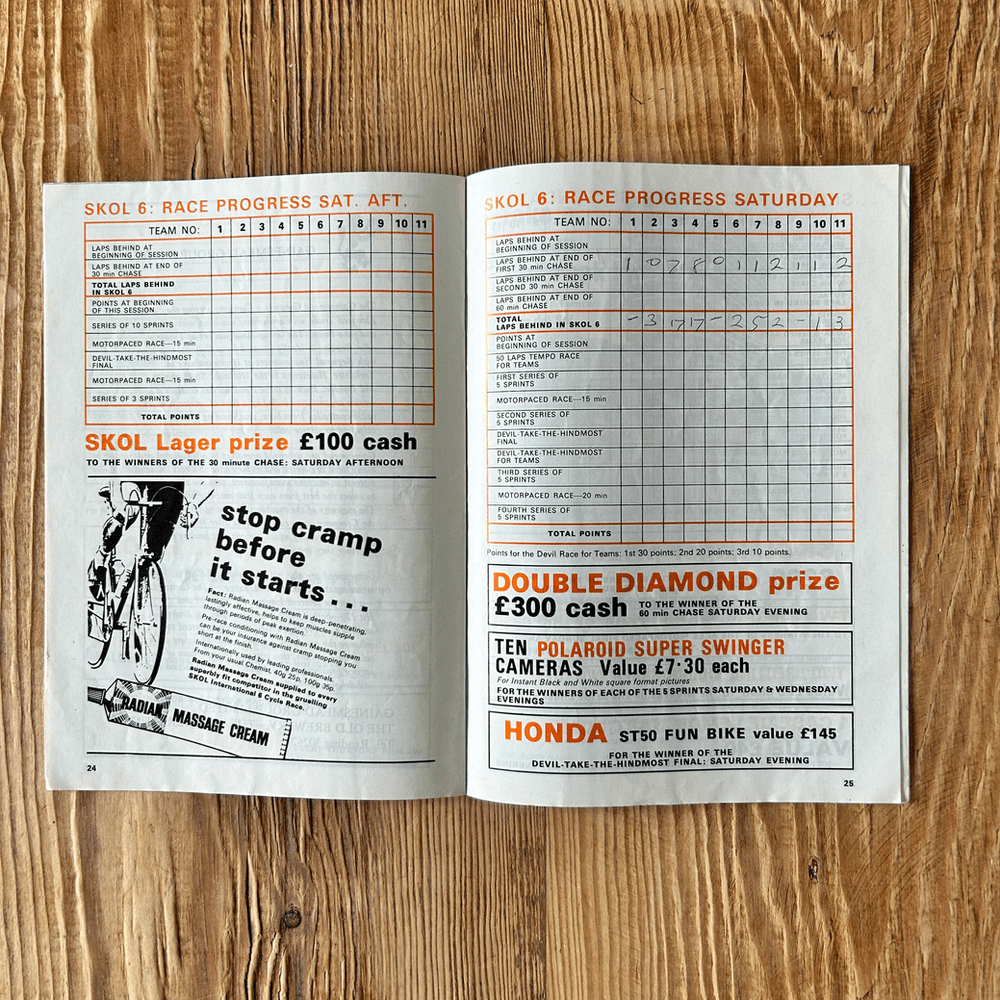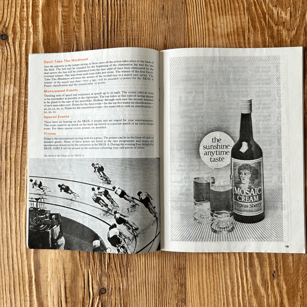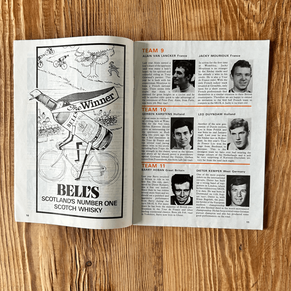 This collection features three original Skol 6 Cycle Race Programmes from 1971, 1972, and 1979, all held at the iconic Wembley Arena. These programmes offer a unique historical snapshot of a significant era in British track cycling. Each booklet provides detailed insights into the events, including rider profiles, race schedules, results (where applicable), and advertisements reflecting the period. They capture the excitement and atmosphere of these indoor six-day races, which attracted top international and domestic cyclists.