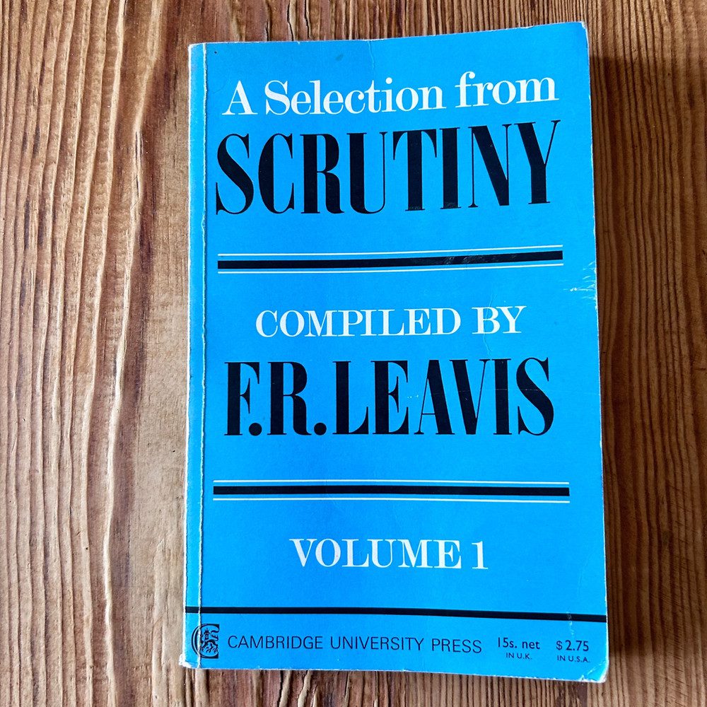 Dr Leavis’s Selection from Scrutiny gives (in two volumes) important material which is not easily available elsewhere. Though many well-known books have already been derived from Scrutiny, these two volumes do not duplicate material in those books, and they give a great deal of otherwise uncollected material by Dr & Mrs Leavis themselves. Volume I begins with a collection of studies by Mrs Q. D. Leavis on academic traditions. There follows a section of studies of T. S. Eliot, Yeats, Pound, and more recent poets. Two sections on ‘Literary Culture’ and ‘The Literary World’ comment on minor writers and on literary life and institutions