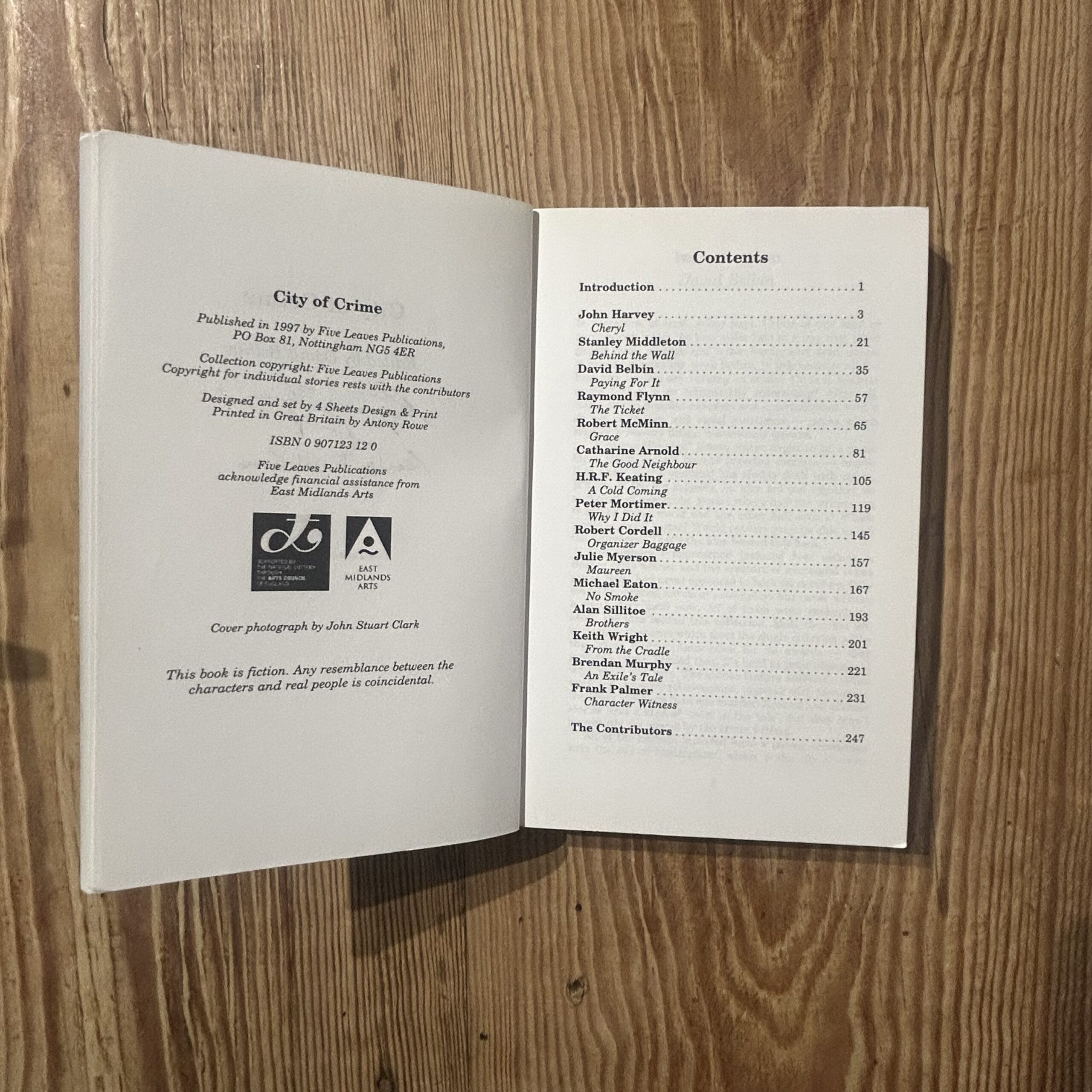 Explore the shadows of Nottingham in this gripping anthology of noir and mystery. Edited by David Belbin and published by the renowned Five Leaves Publishing, City of Crime brings together a powerhouse of literary talent, including short stories from Catherine Arnold, John Harvey, and HRF Keating. This specific 1997 first-edition paperback is a rare find, featuring the authentic signatures of contributors Raymond Flynn and the Booker Prize-winning Stanley Middleton. From gritty police procedurals to atmospheric psychological suspense, these stories map the dark heart of the city. A prized addition for collectors of British crime fiction and local Nottinghamshire literature.