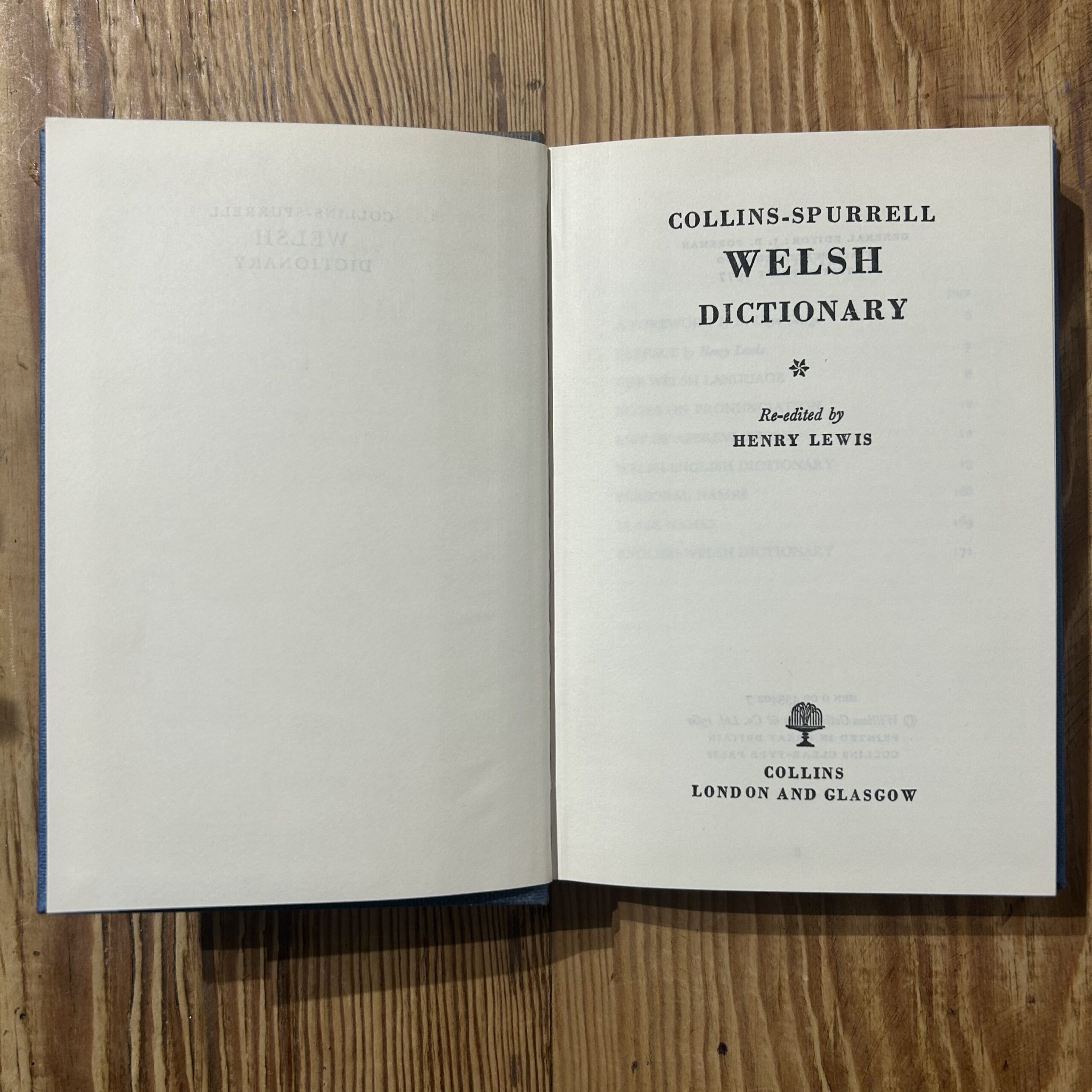 The Collins-Spurrell Welsh Dictionary – Welsh-English / English-Welsh – Ed. Henry Lewis – 1977 Collins Hardback