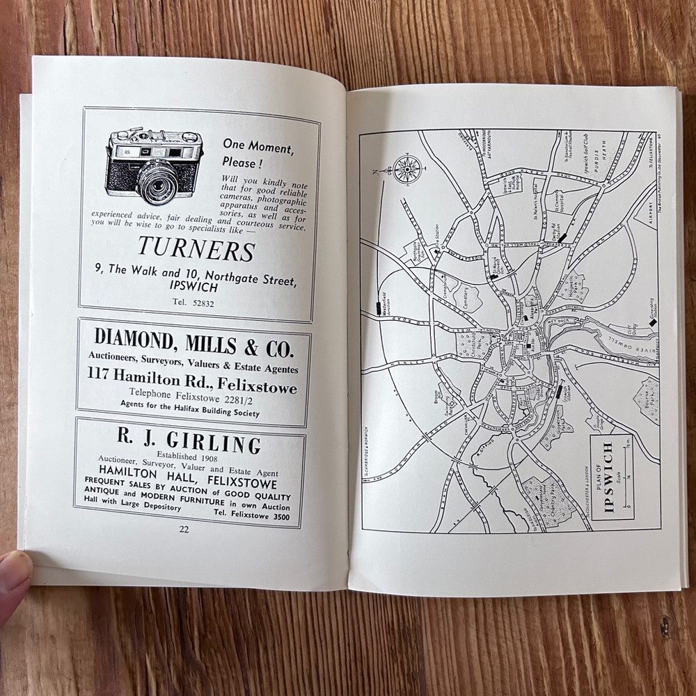 Fully illustrated and containing a road map of the county and a street plan of the County Town. An Interesting post-war guide to Suffolk, full of interesting articles, histories and adverts