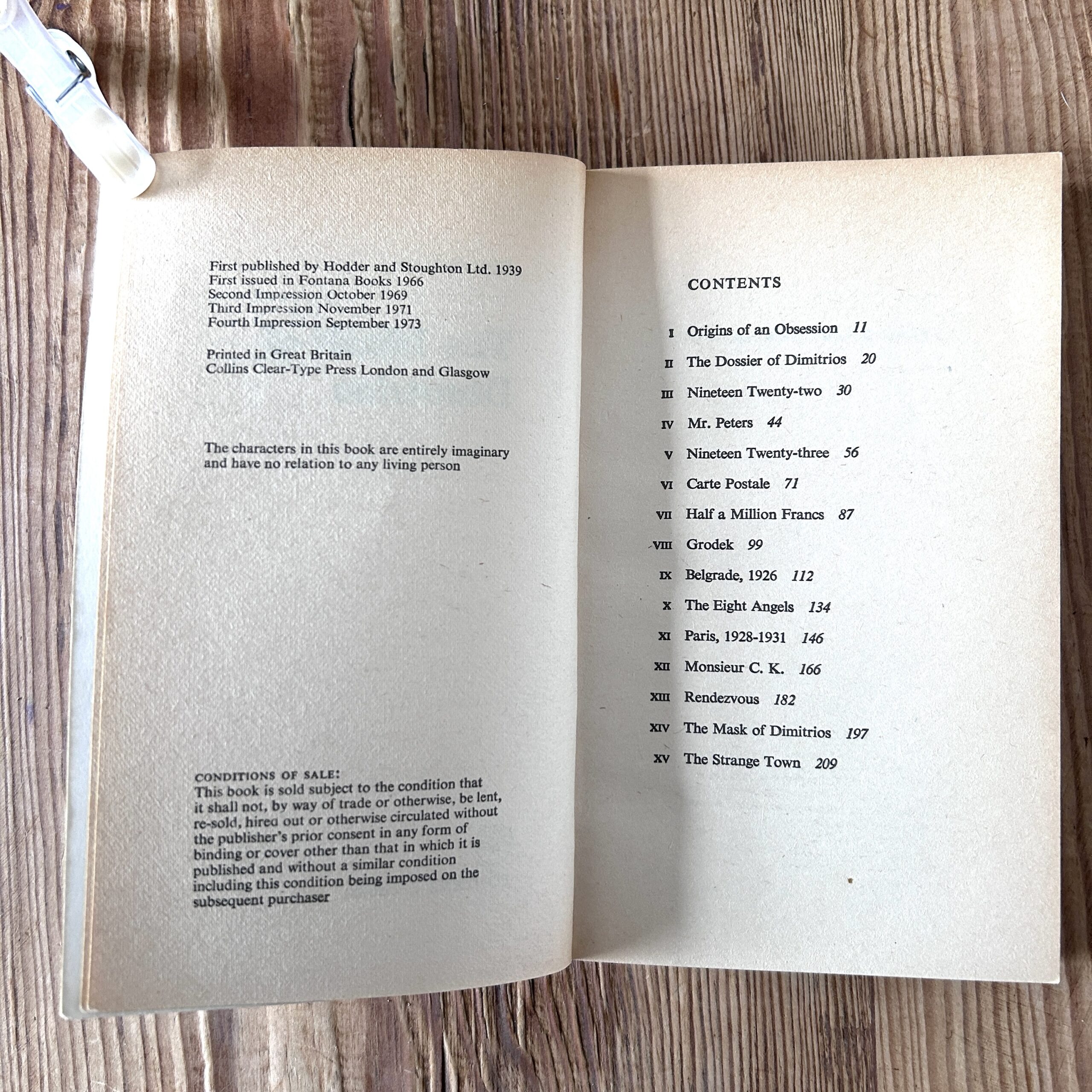 The Mask of Dimitrios is a seminal masterpiece of espionage fiction by Eric Ambler, often cited as one of the greatest spy novels ever written. This 1973 Fontana edition follows mystery writer Charles Latimer as he becomes obsessed with the life and death of a notorious criminal, Dimitrios Makropoulos. His journey through the murky underworld of pre-war Europe—from Istanbul to Paris—uncovers a dark web of political intrigue, assassination, and betrayal. Ambler’s gritty realism and sophisticated plotting redefined the thriller genre, making this vintage paperback a must-have for collectors of classic crime fiction and mid-century pulp.