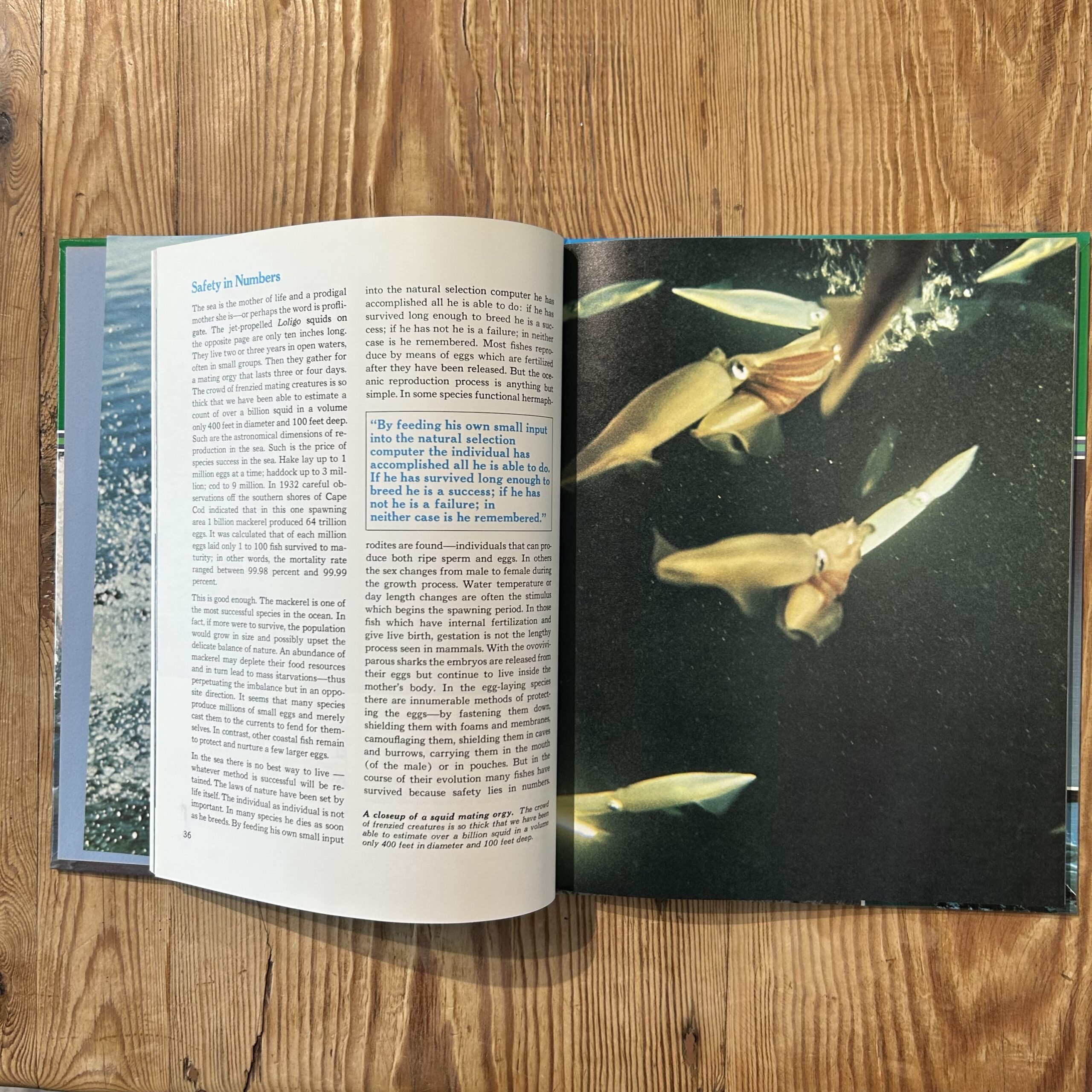 Jacques Cousteau’s first volume in his oceanographic series introduces the biological and chemical complexities of the marine environment. The text details the unique properties of water and its necessity for all known forms of life on Earth. Through vivid photography and descriptive prose, the work documents the diverse species inhabiting the world’s oceans and the delicate balance of aquatic ecosystems. It serves as a foundational study of the physical world beneath the waves.