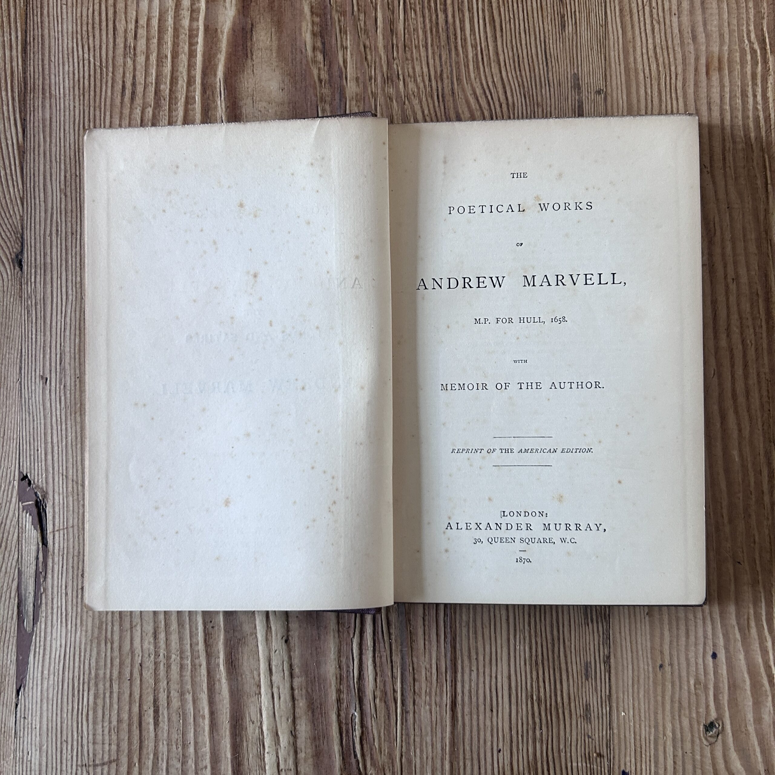 The Poetical Works of Andrew Marvell Alexander Murray 1870 Victorian Poetry Memoir