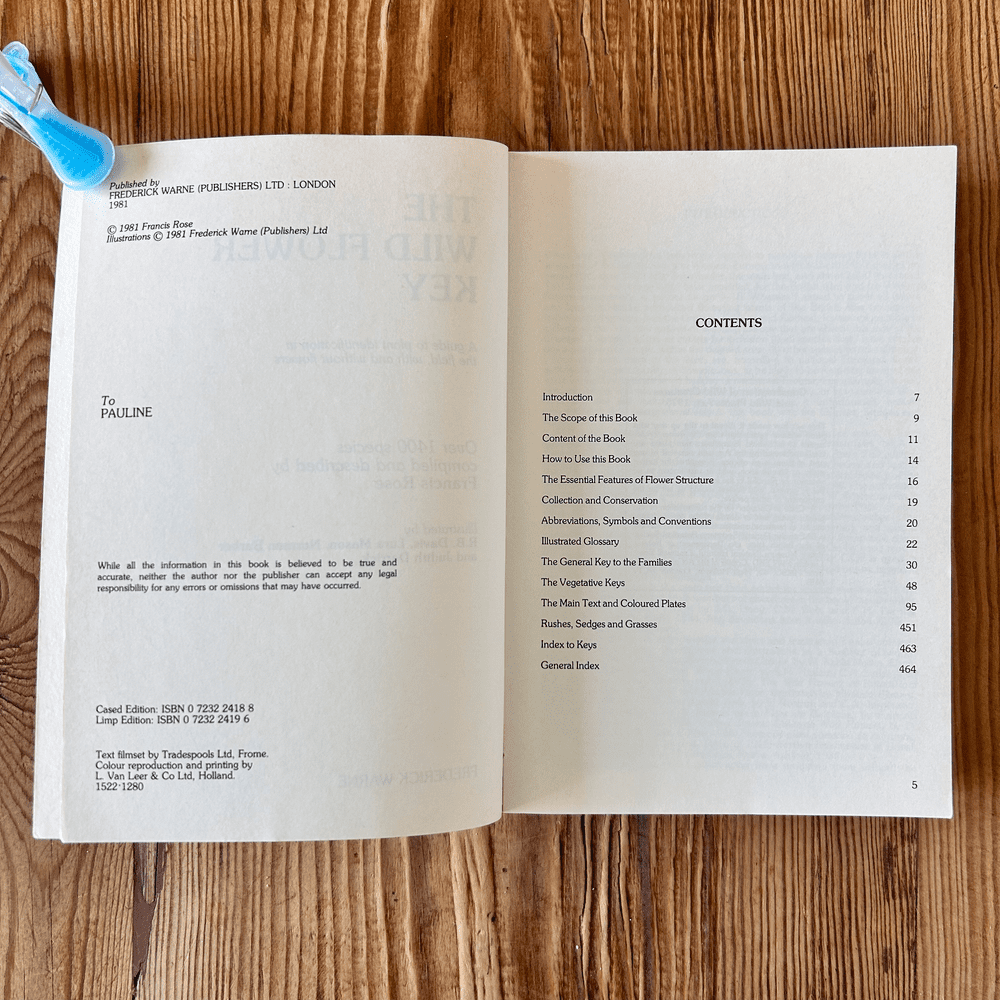 “The Wild Flower Key” by Francis Rose is a guide designed for identifying wildflowers in their natural habitats. It’s known for enabling identification both when the plants are in bloom (flowering) and when they are not.