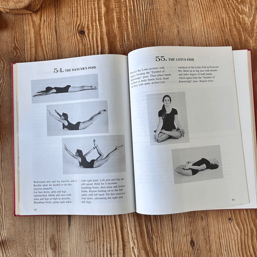 The book outlines a progressive system of yoga postures, emphasizing gradual development of flexibility, balance, and strength, along with proper breathing techniques. It includes specialized sections, such as yoga for children and exercises for the mind, making it a comprehensive resource.